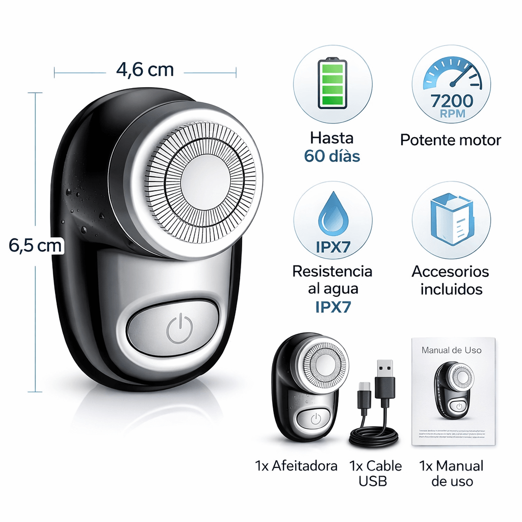 Mini Afeitadora Portátil Recargable - Afeitado Profesional, Preciso y Sin Dolor